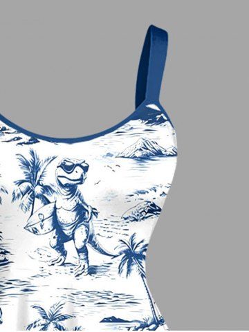 Plus Size Coconut Tree Dinosaur Sea Waves Print Hawaii Tank Dress - Blue - 6x