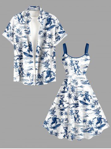 Graphic Dresses > Plus Size Coconut Tree Dinosaur Sea Waves Print Hawaii Tank Dress