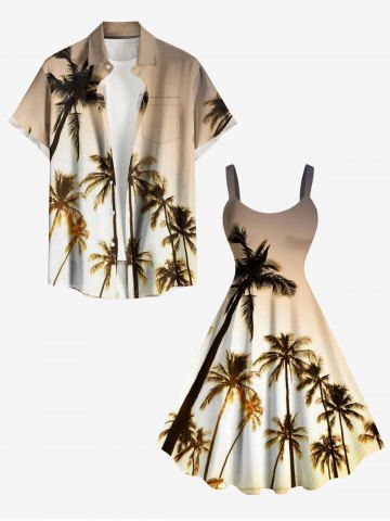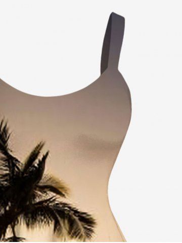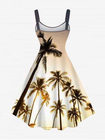 Plus Size Coconut Tree Dip Dye Ombre Print Hawaii A Line Dress - Light Coffee - 6x