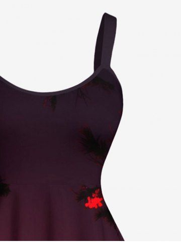 Plus Size Coconut Tree Dip Dye Ombre Sky Print Hawaii A Line Tank Dress - Red - Xs