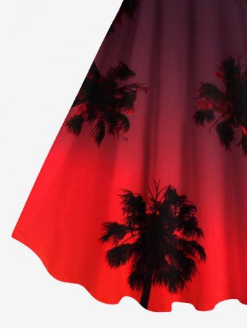 Plus Size Coconut Tree Dip Dye Ombre Sky Print Hawaii A Line Tank Dress - Red - 4x