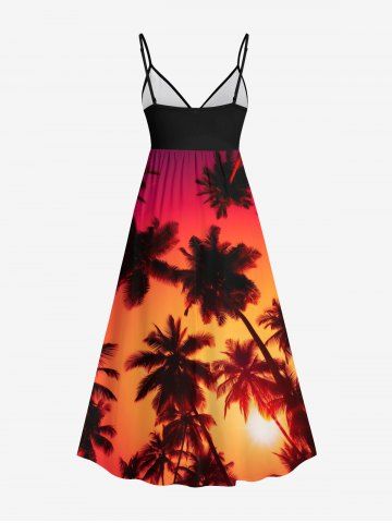 Graphic Dresses > Plus Size Coconut Tree Dip Dye Ombre Sunset Print Hawaii Surplice A Line Cami Dress