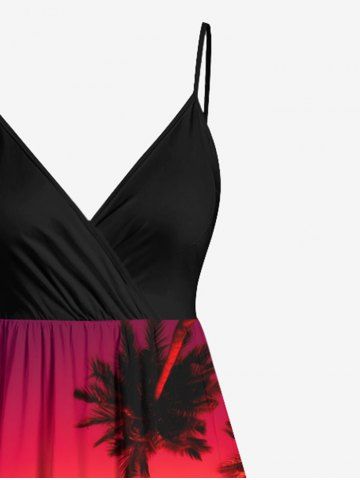 Graphic Dresses > Plus Size Coconut Tree Dip Dye Ombre Sunset Print Hawaii Surplice A Line Cami Dress