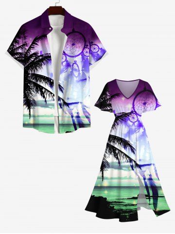 Graphic Dresses > Plus Size Coconut Tree Dreamcatcher Feather Sea Print Hawaii Split Pocket A Line Midi Dress
