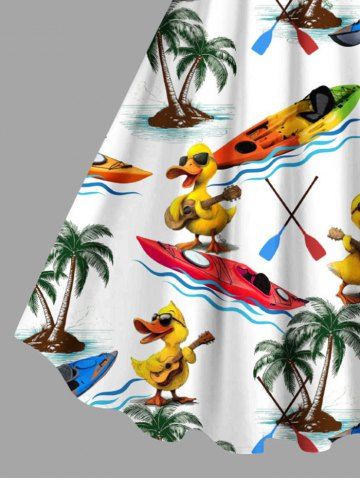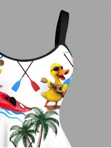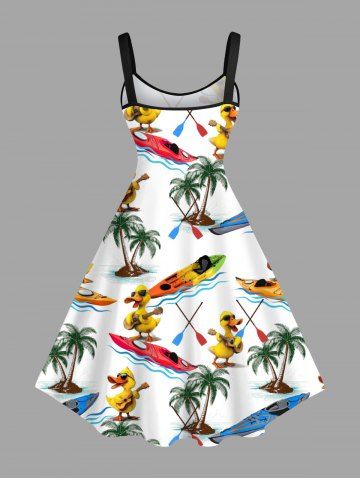 Plus Size Coconut Tree Duck Sailboat Sea Print Hawaii A Line Tank Dress - White - L