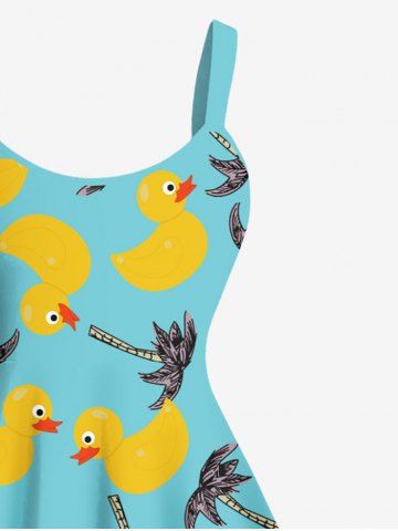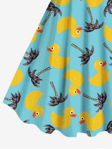 Graphic Dresses > Plus Size Coconut Tree Ducks Print Hawaii Tank Dress
