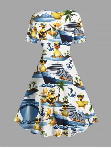 M*****e5Plus Size Coconut Tree Ducks Sea Waves Ship Print Vintage Hawaii DressColor: BLUE Size: SVraiment jolie. Taille parfaite. Tissus très doux. J’adore!