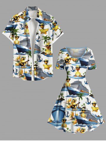 J*****a5Coconut Tree Ducks Sea Waves Ship Print Plus Size Matching Hawaii Beach Outfit For CouplesColor: BLUEThe matching outfit was a great hit on our cruise. The dress was very comfortable and a good quality. My husband loved the shirt.