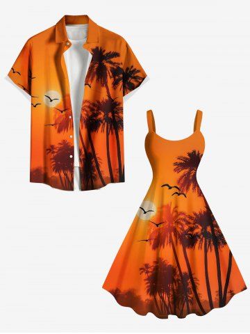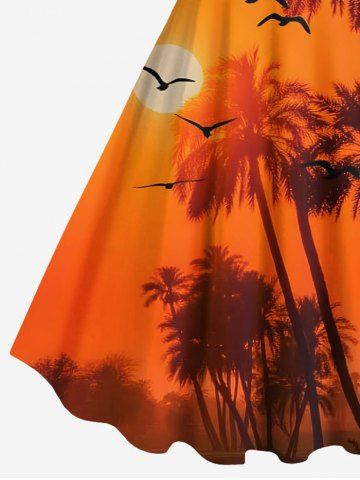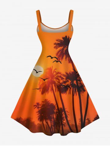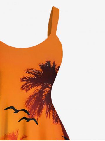 Plus Size Coconut Tree Dusk Sunset Print Hawaii A Line Tank Dress - Dark Orange - M