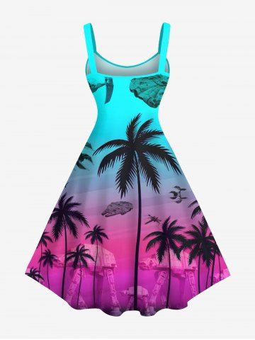 Graphic Dresses > Plus Size Coconut Tree Fighter Arms Ombre Print Hawaii Tank Dress