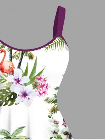 Plus Size Coconut Tree Flamingo Flowers Leaf Print Hawaii Tank Dress - White - Xxs