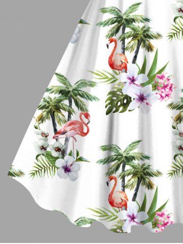Plus Size Coconut Tree Flamingo Flowers Leaf Print Hawaii Tank Dress - White - Xs