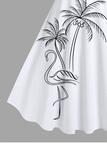 Plus Size Coconut Tree Flamingo Hand-painted Print Hawaii A Line Tank Dress - White - L