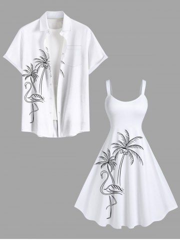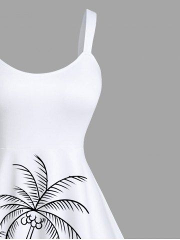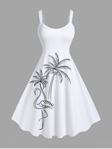 Plus Size Coconut Tree Flamingo Hand-painted Print Hawaii A Line Tank Dress - White - 1x
