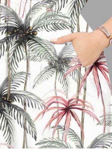 Plus Size Coconut Tree Flamingo Print Hawaii Split Pocket A Line Midi Dress - White - Xxs