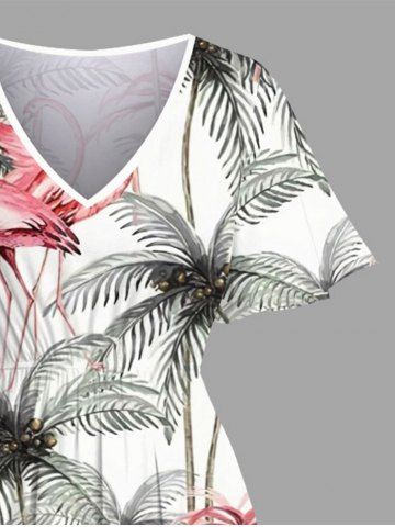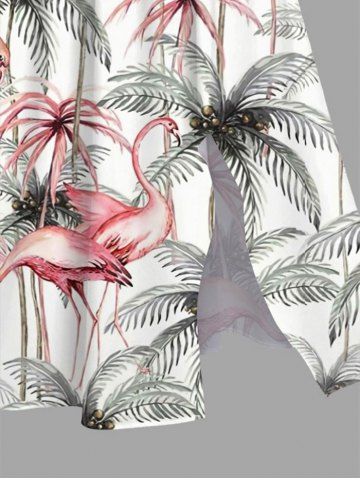 Plus Size Coconut Tree Flamingo Print Hawaii Split Pocket A Line Midi Dress - White - S