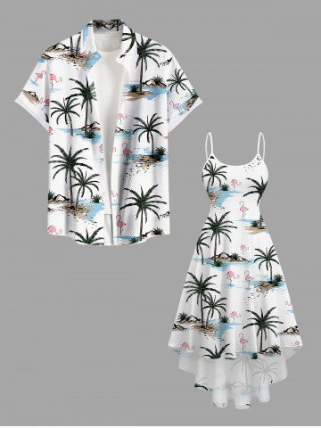 Plus Size Coconut Tree Flamingo Print High Low Hawaii Cami Dress - White - Xxs