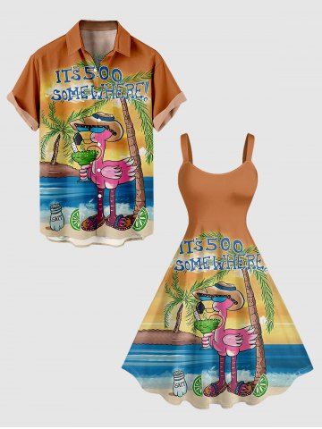 Plus Size Coconut Tree Flamingo Seascape Fruit Juice Print Hawaii Tank Dress - Orange - L