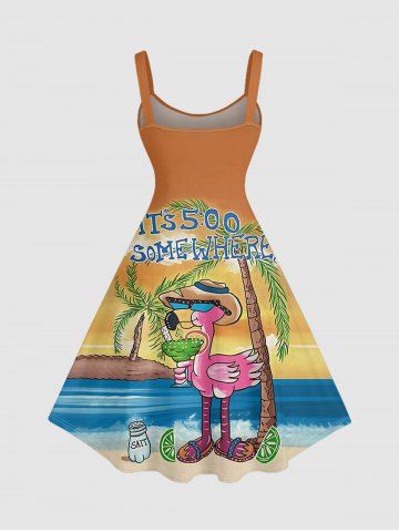 Plus Size Coconut Tree Flamingo Seascape Fruit Juice Print Hawaii Tank Dress - Orange - 5x