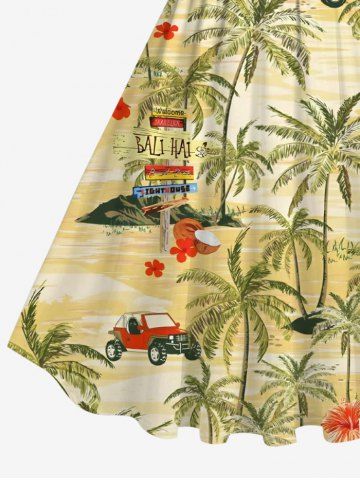 Plus Size Coconut Tree Floral Beach Car Print Hawaii 1950s Vintage Swing A Line Dress - Yellow - Xxs