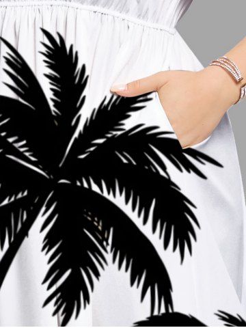 Plus Size Coconut Tree Floral Leaves Butterfly Print Hawaii Split Pocket A Line Midi Dress - White - 6x