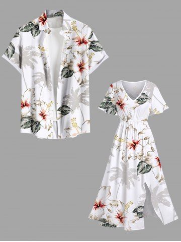 Coconut Tree Flower Leaf Print Plus Size Matching Hawaii Beach Outfit For Couples