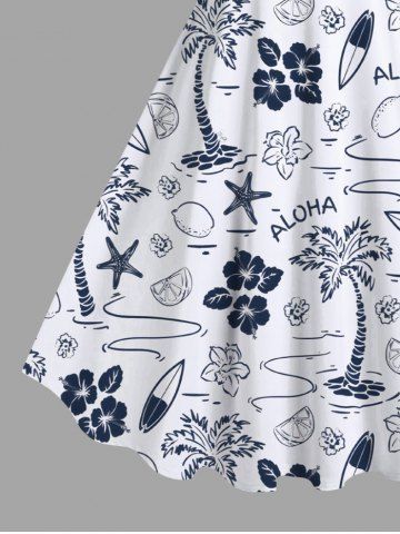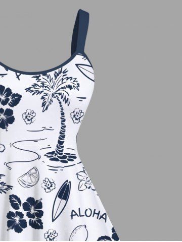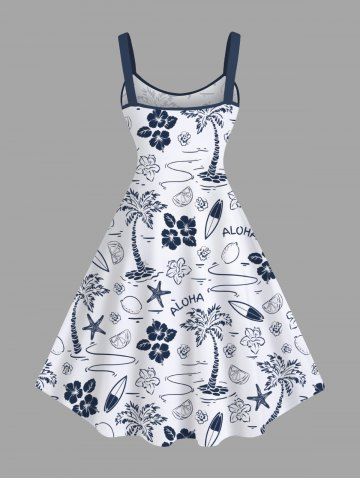 Plus Size Coconut Tree Floral Lemon Starfish Sailboat Print Hawaii A Line Tank Dress - White - 1x