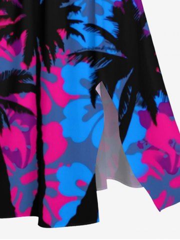Graphic Dresses > Plus Size Coconut Tree Floral Print Hawaii Split Pocket A Line Dress