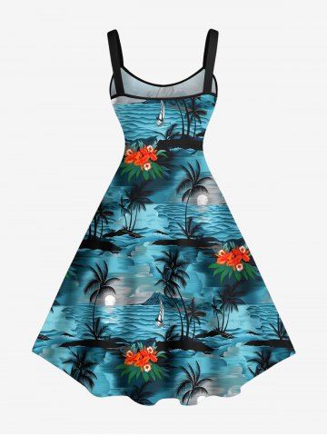 Graphic Dresses > Plus Size Coconut Tree Floral Sea Wave Seascape Print Hawaii A Line Tank Dress