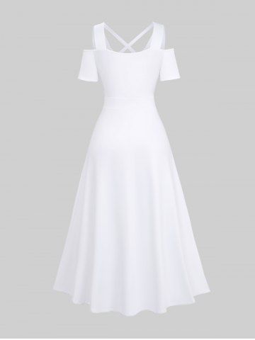 Plus Size Coconut Tree Flower Beach Print Hawaii Crisscross A Line Maxi Dress - White - Xs