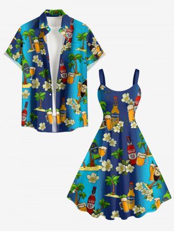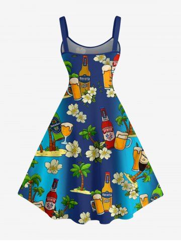 Plus Size Coconut Tree Flower Beer Ombre Print Hawaii A Line Dress - Deep Blue - Xs