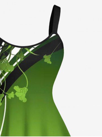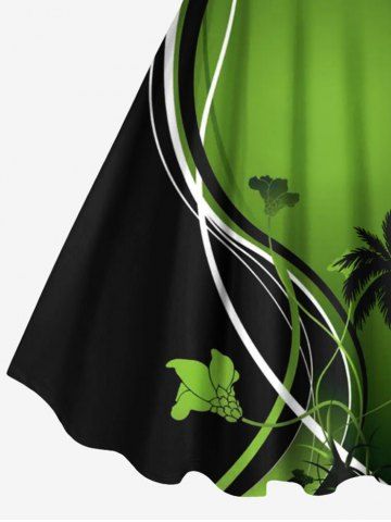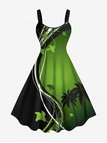 Plus Size Coconut Tree Flower Colorblock Print Hawaii Tank Dress - Green - 4x