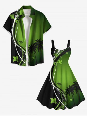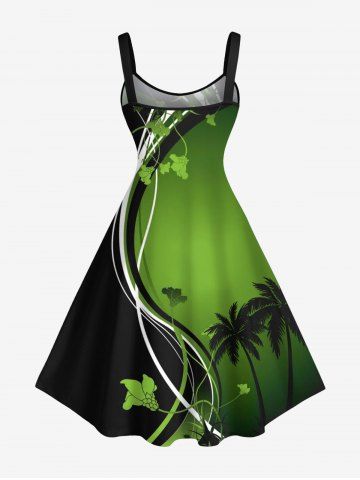 Plus Size Coconut Tree Flower Colorblock Print Hawaii Tank Dress - Green - 5x