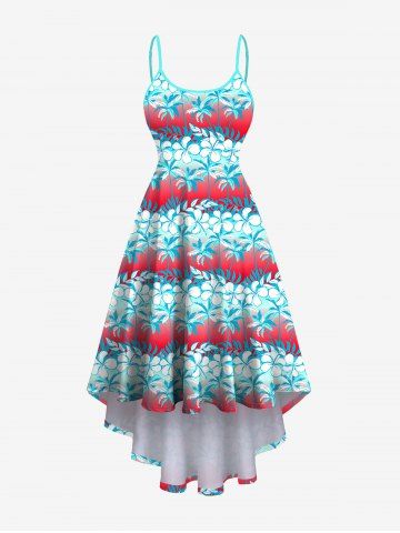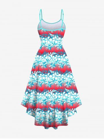 Plus Size Coconut Tree Flower Colorblock Print High Low Hawaii Cami Dress - Light Blue - 5x