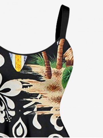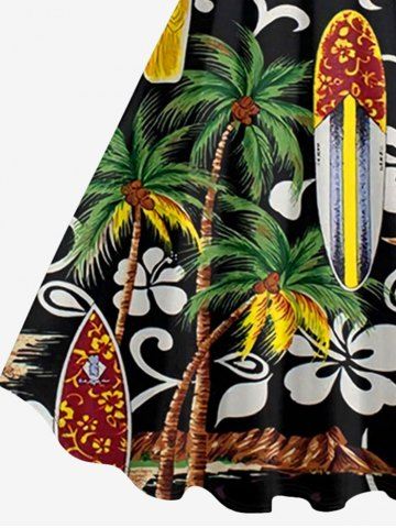 Plus Size Coconut Tree Flower Ethnic Pattern Print Hawaii A Line Dress - Black - L