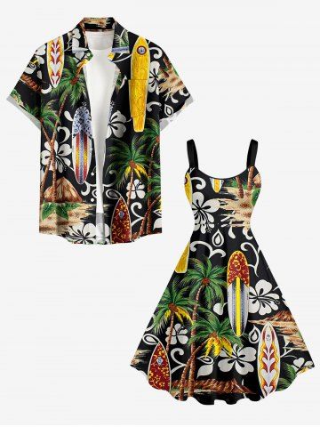 Plus Size Coconut Tree Flower Ethnic Pattern Print Hawaii A Line Dress - Black - 4x