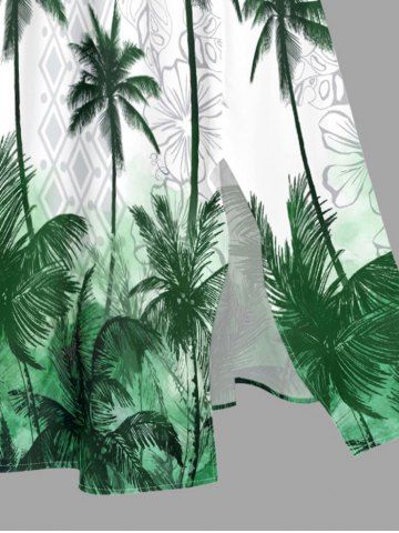Plus Size Coconut Tree Flower Geometric Graphic Print Hawaii Split Pocket A Line Midi Dress - Green - Xxs