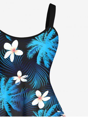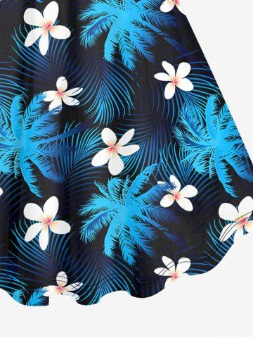 Plus Size Coconut Tree Flower Print Hawaii Backless A Line Tank Dress - Black - 3x