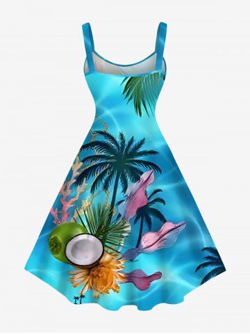 Plus Size Coconut Tree Flowers Leaf Print Hawaii Tank Dress - Sky Blue - Xs