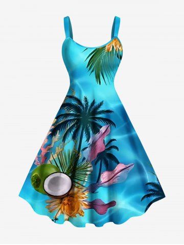 Graphic Dresses > Plus Size Coconut Tree Flowers Leaf Print Hawaii Tank Dress