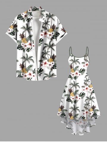 Plus Size Coconut Tree Flowers Leaf Print High Low Hawaii Cami Dress - White - Xs