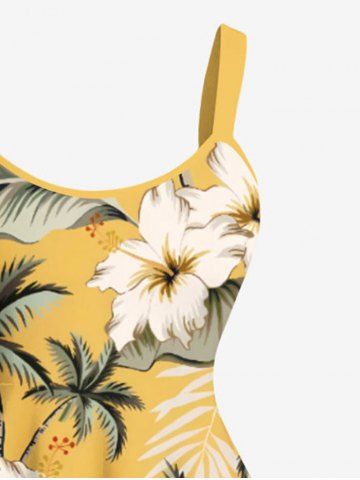 Plus Size Coconut Tree Flowers Leaf Tropical Print Hawaii Tank Dress - Yellow - 4x