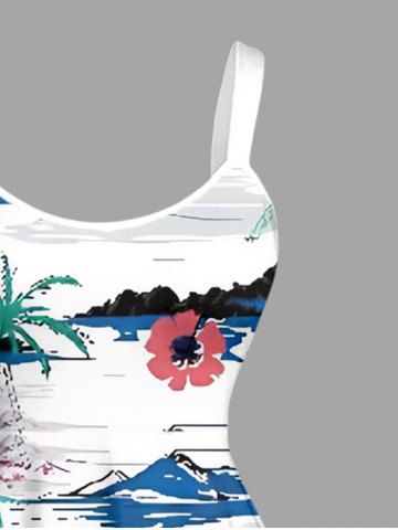 Plus Size Coconut Tree Flowers Mountain Print Hawaii Tank Dress - White - 4x