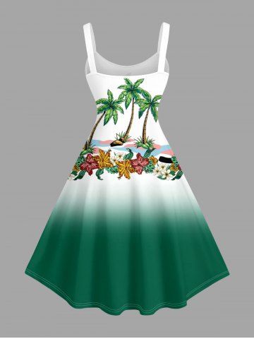 Plus Size Coconut Tree Flowers Ombre Colorblock Print Hawaii Tank Dress - Green - 1x
