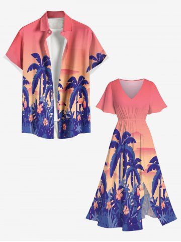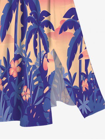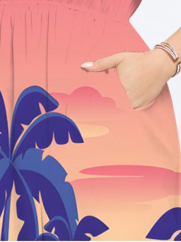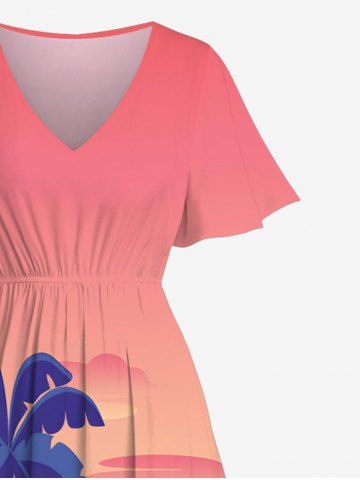 Plus Size Coconut Tree Flowers Ombre Print Split Hawaii Midi Dress - Light Pink - 2x