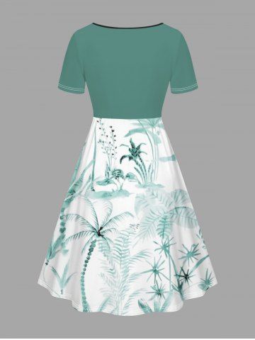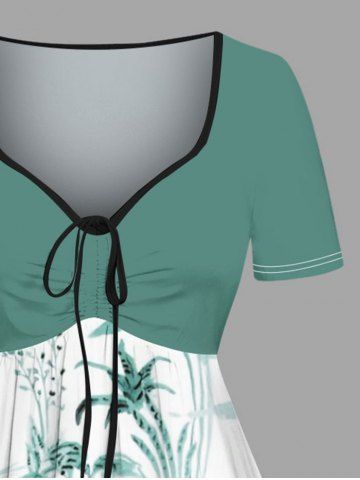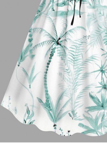 Plus Size Coconut Tree Flowers Print Cinched Hawaii Dress - Green - 2x