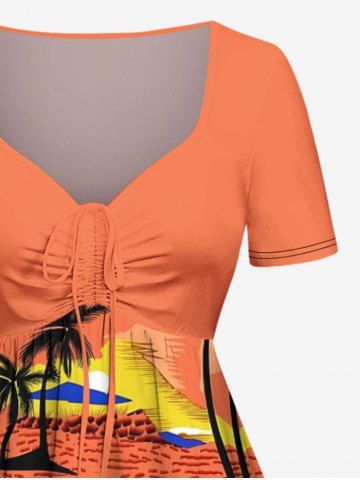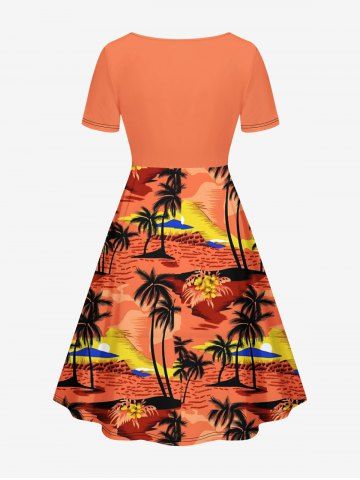 Plus Size Coconut Tree Flowers Print Cinched Hawaii Dress - Dark Orange - 6x