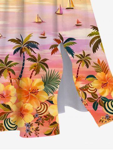 Graphic Dresses > Plus Size Coconut Tree Flowers Sailboat Ombre Sky Print Hawaii Split Dress
