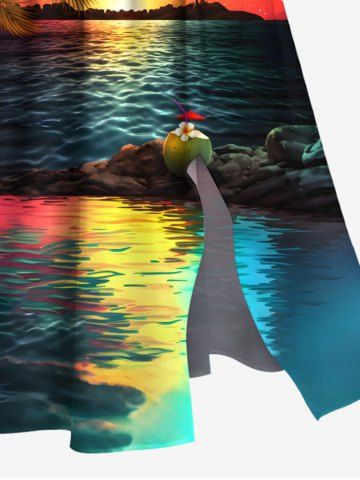 Graphic Dresses > Plus Size Coconut Tree Flowers Sun Seascape Print Split Hawaii Midi Dress