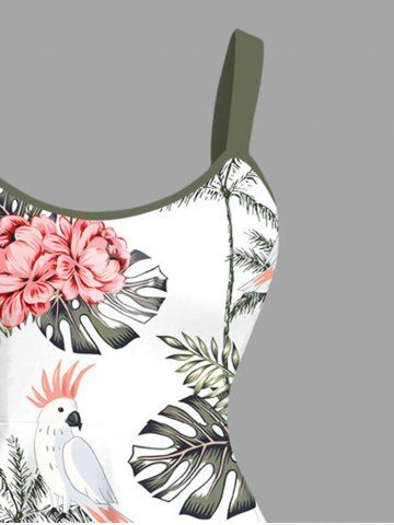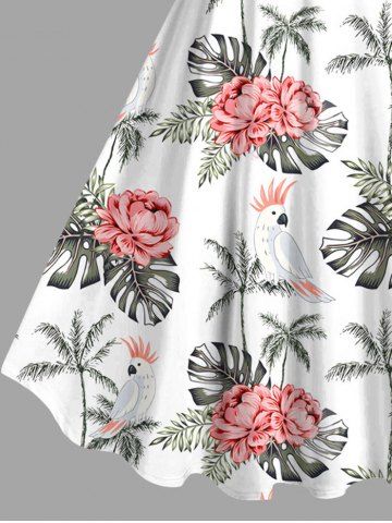 Plus Size Coconut Tree Flowers Tropical Leaf Parrot Print Hawaii Tank Dress - White - Xxs